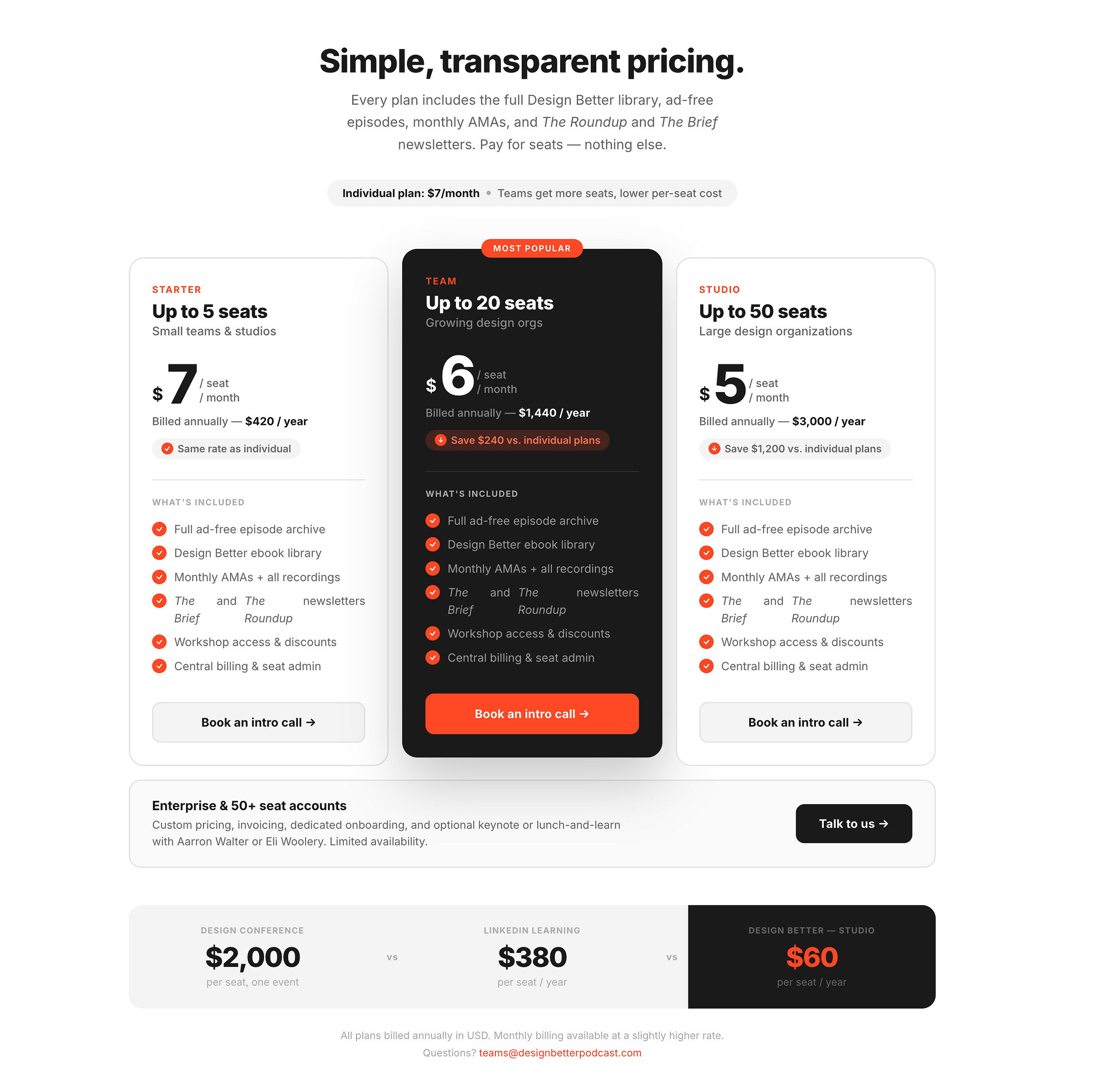 You’re already part of the community. Now bring your team along. Existing paid subscribers get a credit toward a team plan — because we know you’re often the person best positioned to champion this internally. Email us at teams@designbetterpodcast.com and mention your personal subscription.