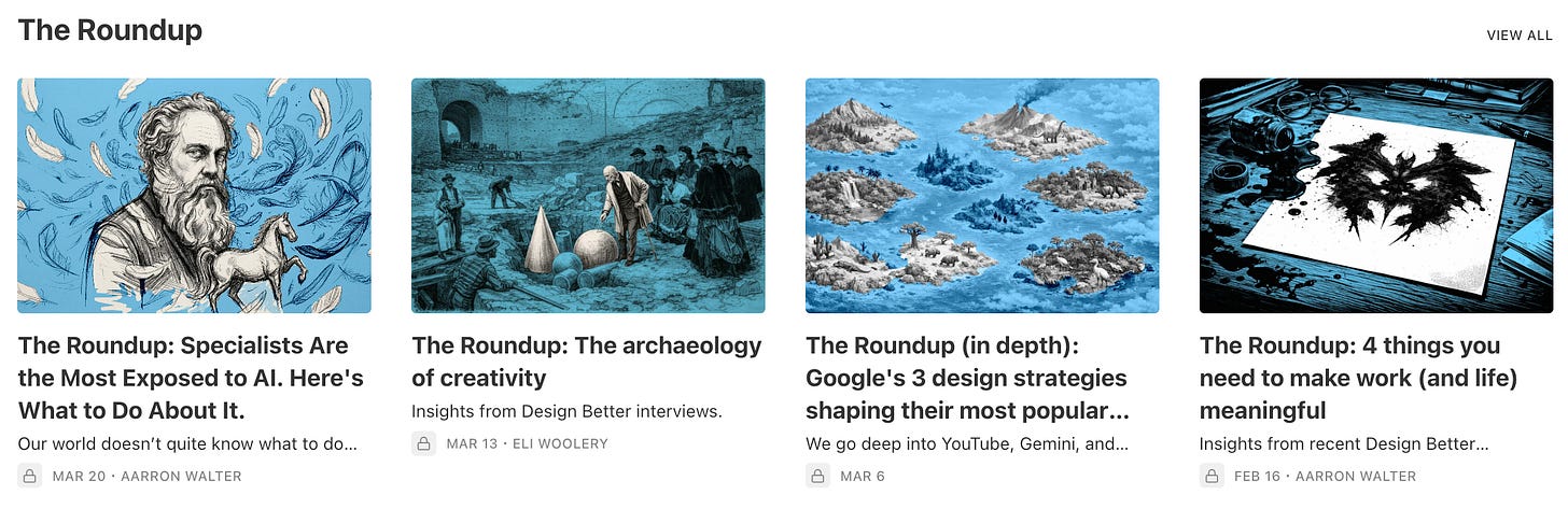 This is a premium episode on Design Better. We release two premium episodes per month, along with two free episodes for everyone. Get a behind-the-scenes pass to every episode with The Roundup, where each week we bring you insights and actionable tactics from recent episodes.
