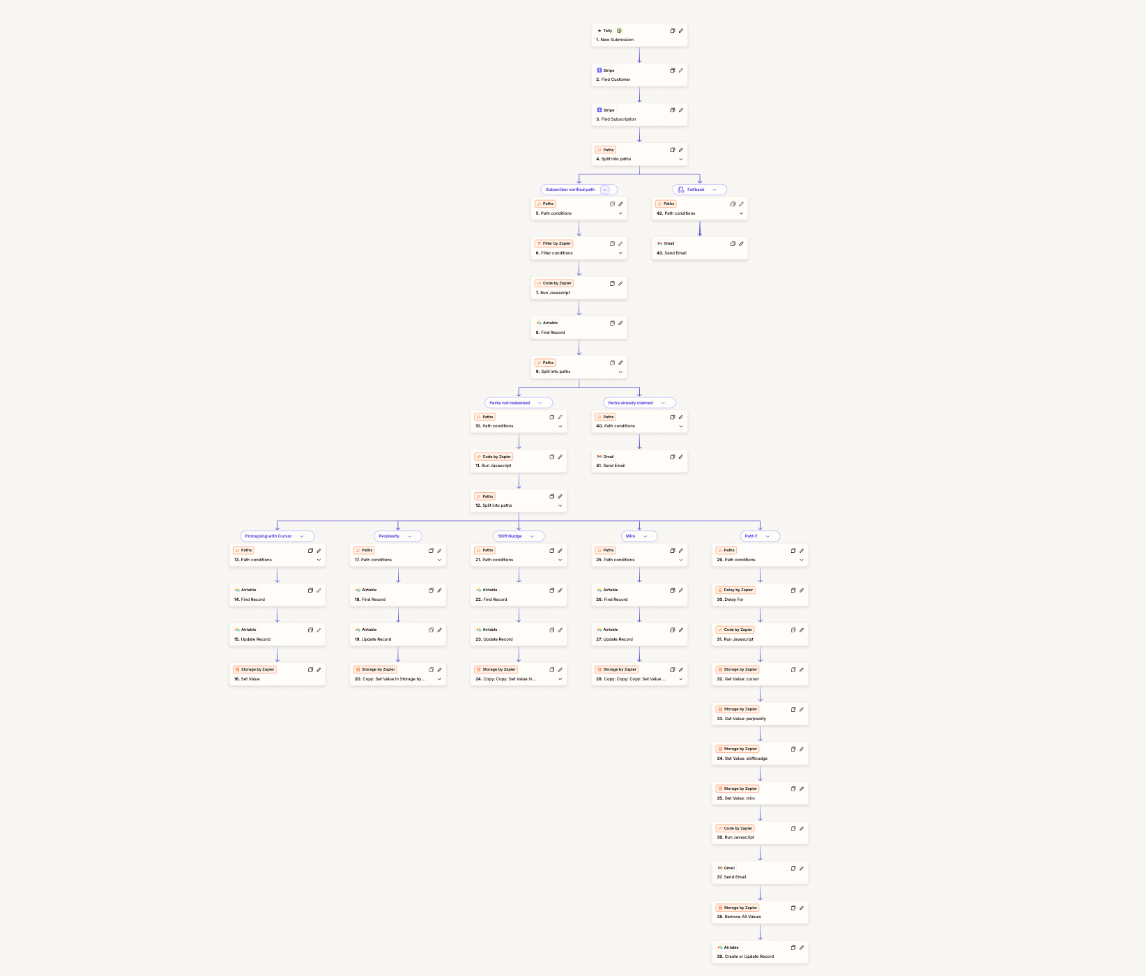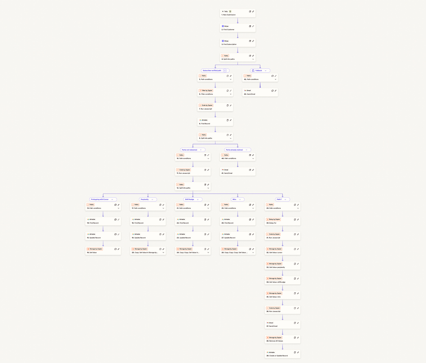 If only it were that simple. After a little wrangling, I got the Stripe verification working. But the looping and storage in Zapier didn’t play nicely together, and I kept getting stuck in recursive errors, where one element would get fixed and another would break.