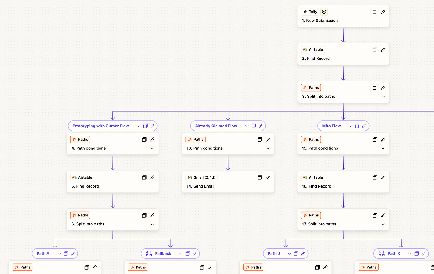 You can see all the nodes in the Zapier workflow below.