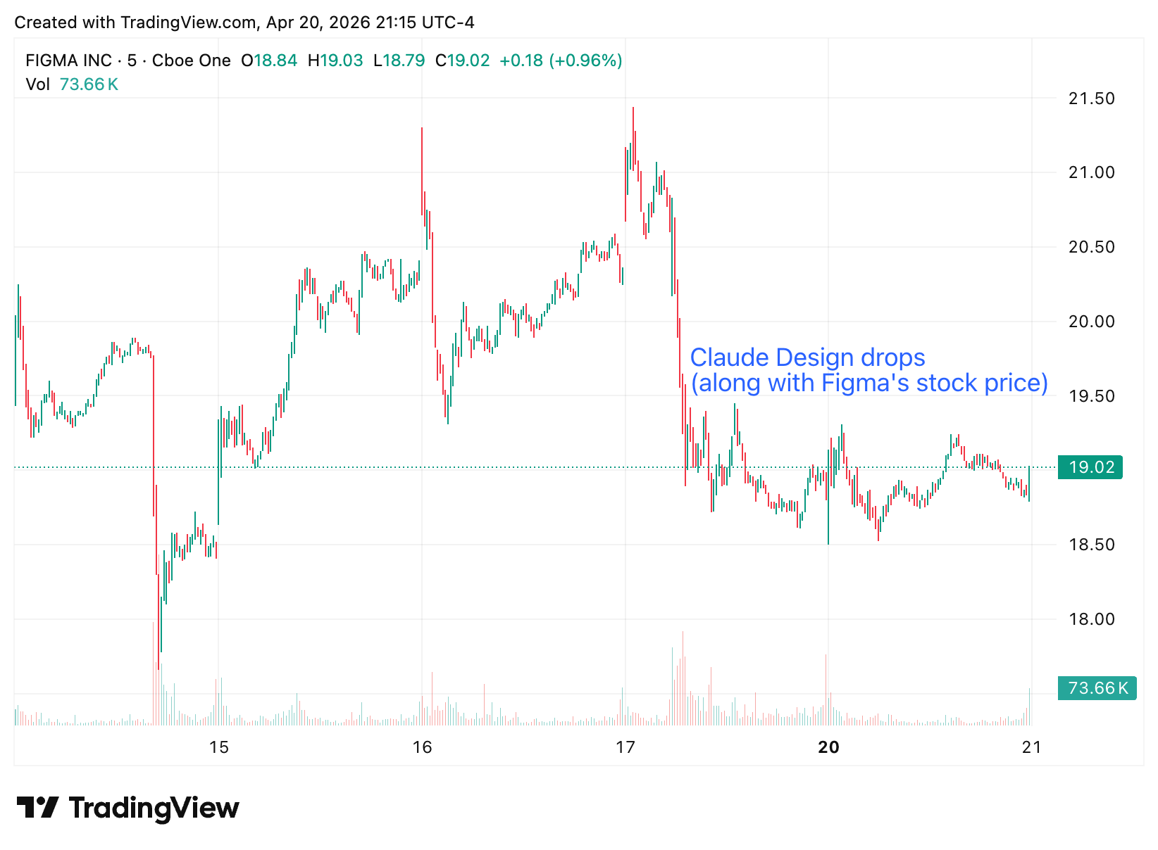 Anthropic dropped Claude Design on Friday April 17 with the same low-key confidence they seem to reserve for every launch: a short news post, a Friday rollout, and a modest caveat that this is a “research preview.” Within hours, Figma’s stock dipped about seven percent. Spoiler alert, we don’t think Claude Design is a Figma killer (yet). But we can see how it could carve off marketshare later this year as it improves.
